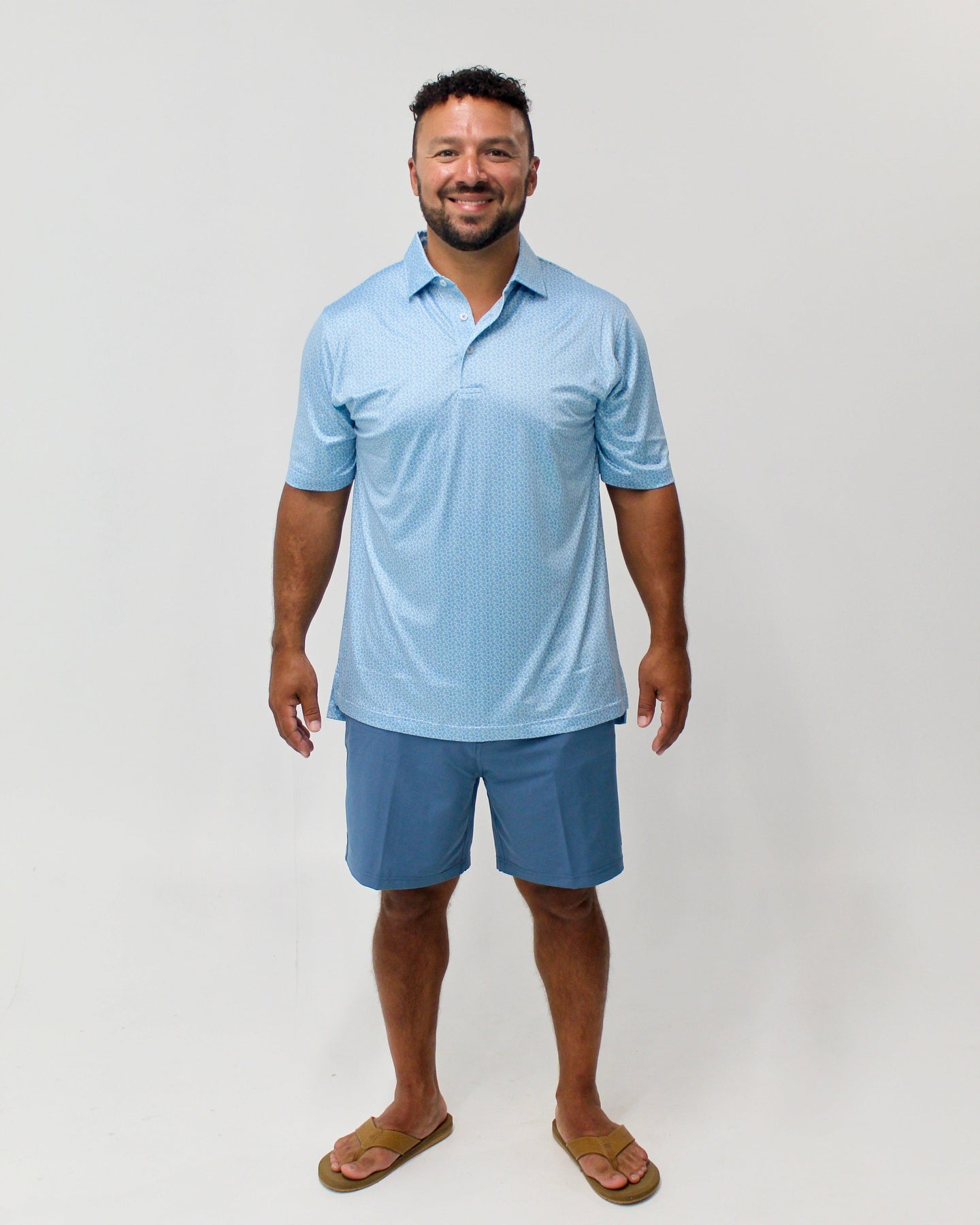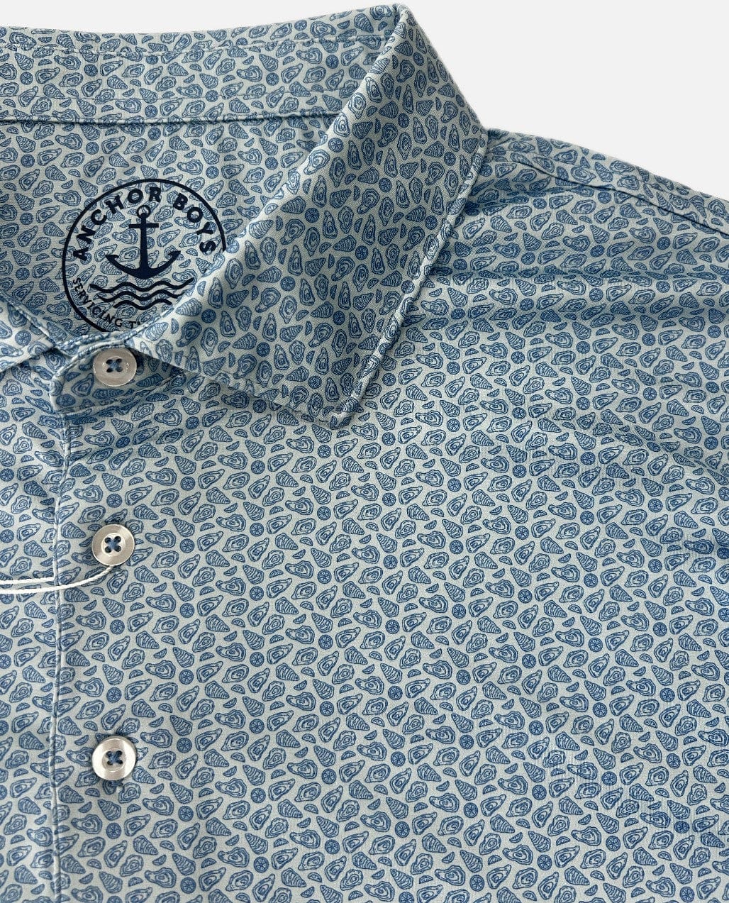 New from Anchor Boys! Check out this lightweight tech polo with Oyster print.