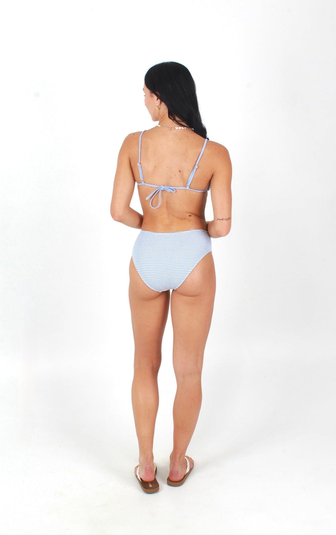 Nalu Kai's Light Blue Stripe Full Coverage Bottom offers a fuller fit for those girlies who want to keep a little more covered.